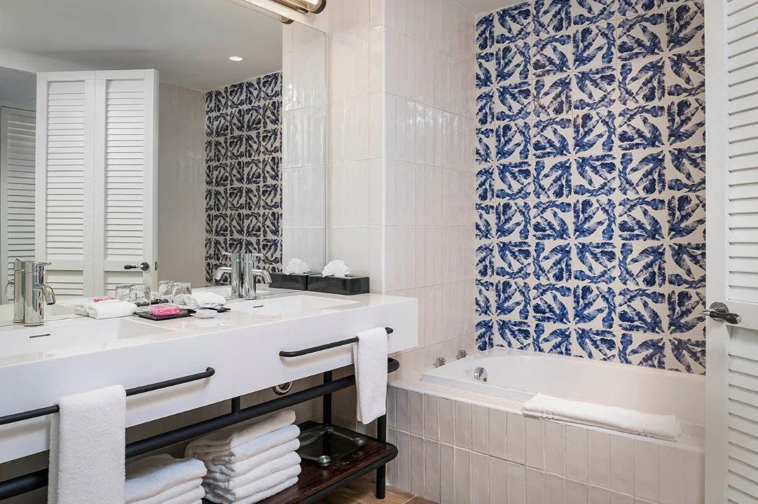 Elegant interior design with King or Two full size beds, , a sitting area with sofa bed and a private balcony with a views of the ocean.